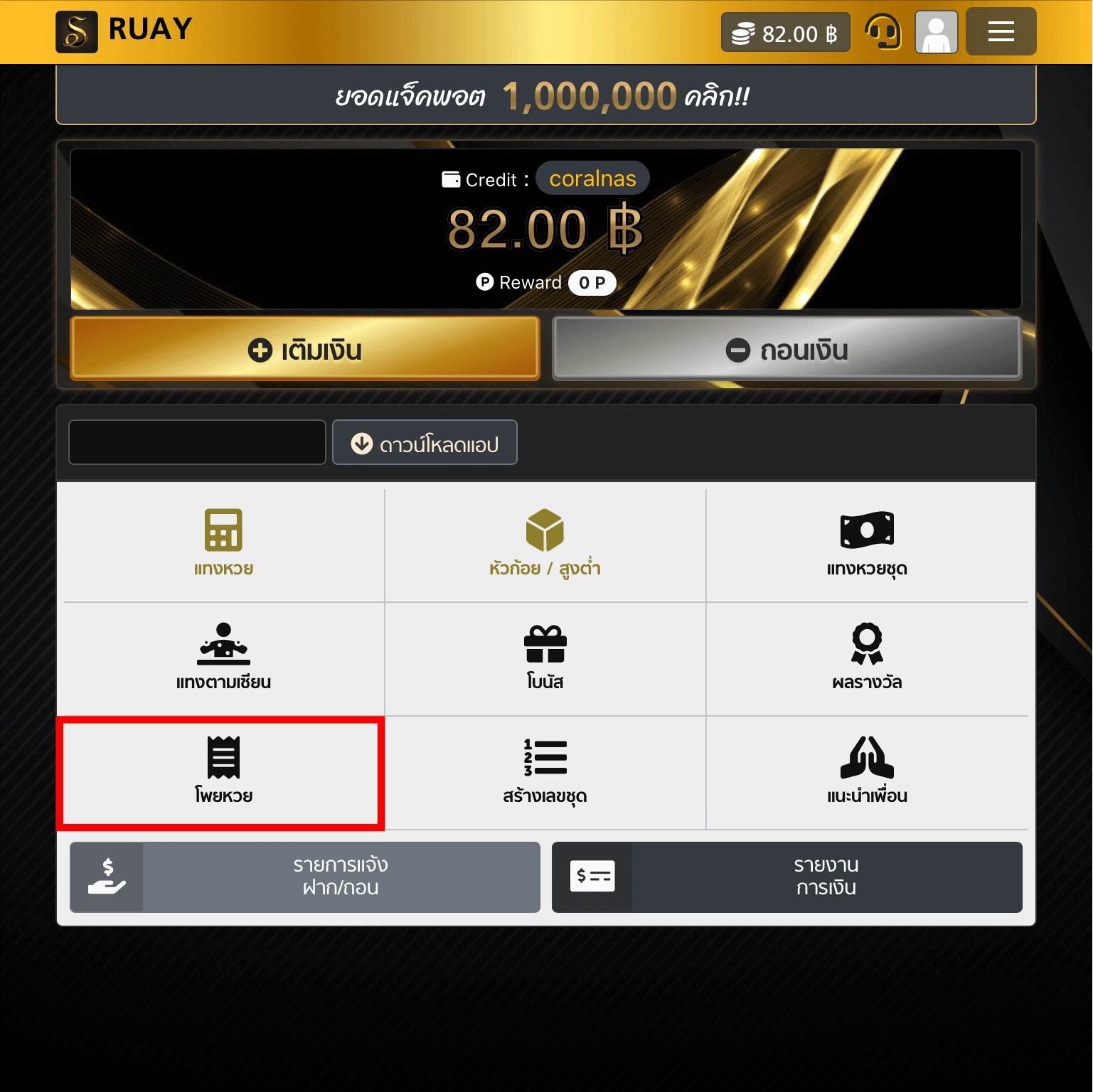 6.เมื่อเสร็จสิ้นแล้ว ให้ทำการกดกลับไปหน้าแรกแล้วกดที่โลโก้เว็ป จากนั้นกดที่คำว่าโพยหวย เพื่อทำการตรวจสอบ เลขที่ผู้เล่นได้ทำการซื้อมา