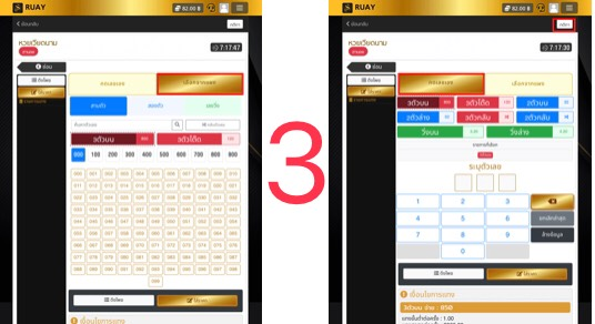 โดยจะบอกประเภทหวย เล่น 3 ตัวบน และ 2 ตัวล่าง โดยการกดซื้อเองจะเลือกเลขได้ 0-9 ในแต่ละช่อง และ การเลือกจากแผงจะสามารถเลือกเลขได้