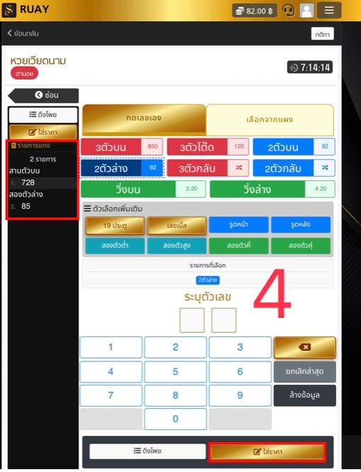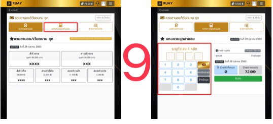 10.เมื่อกรอกแล้ว เลขชุดจะย้ายมาอยู่ข้างล่าง โดยเขียนว่า รายการแทง ให้กรอกเลข 4 ตัวตามที่ต้องการ