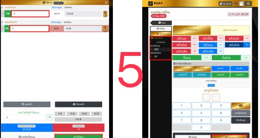 5.ให้ผู้เล่นทำการ ใส่จำนวนเงินที่ต้องการลงไป หรือ หากไม่ต้องการเลขที่อยู่ให้ทำการกดรูปถึงขยะที่เลขนั้นทิ้งไป จากนั้น ให้ทำการกดปุ่มยืนยันการส่งโพย