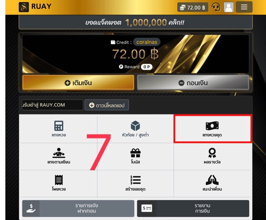 1.ให้ผู้เล่นเปิดหน้าเว็ป ขึ้นมาและเลือก ที่คำว่า แทงหวย หรือ ไอคอน เครื่องคิดเลข