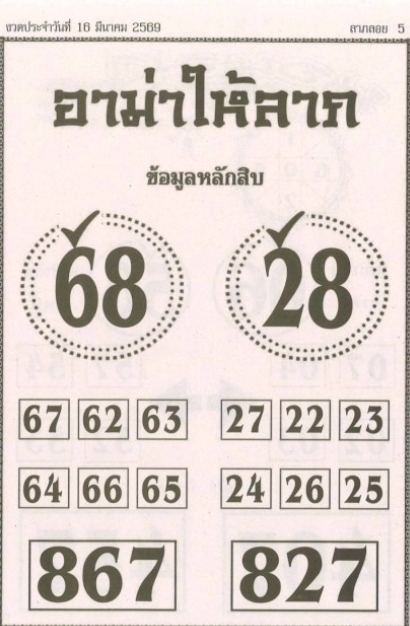 หวยซองอาม่าให้ลาภ งวดประจำวันที่ 16 มีนาคม 2569