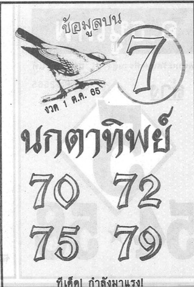 หวยนกตาทิพย์ งวดวันที่ 1 ตุลาคม 2565