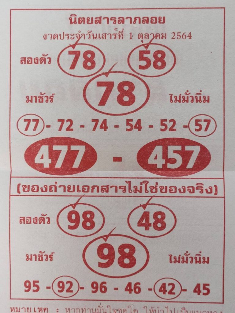 หวยลาภลอย งวดวันที่ 1 ตุลาคม 2565