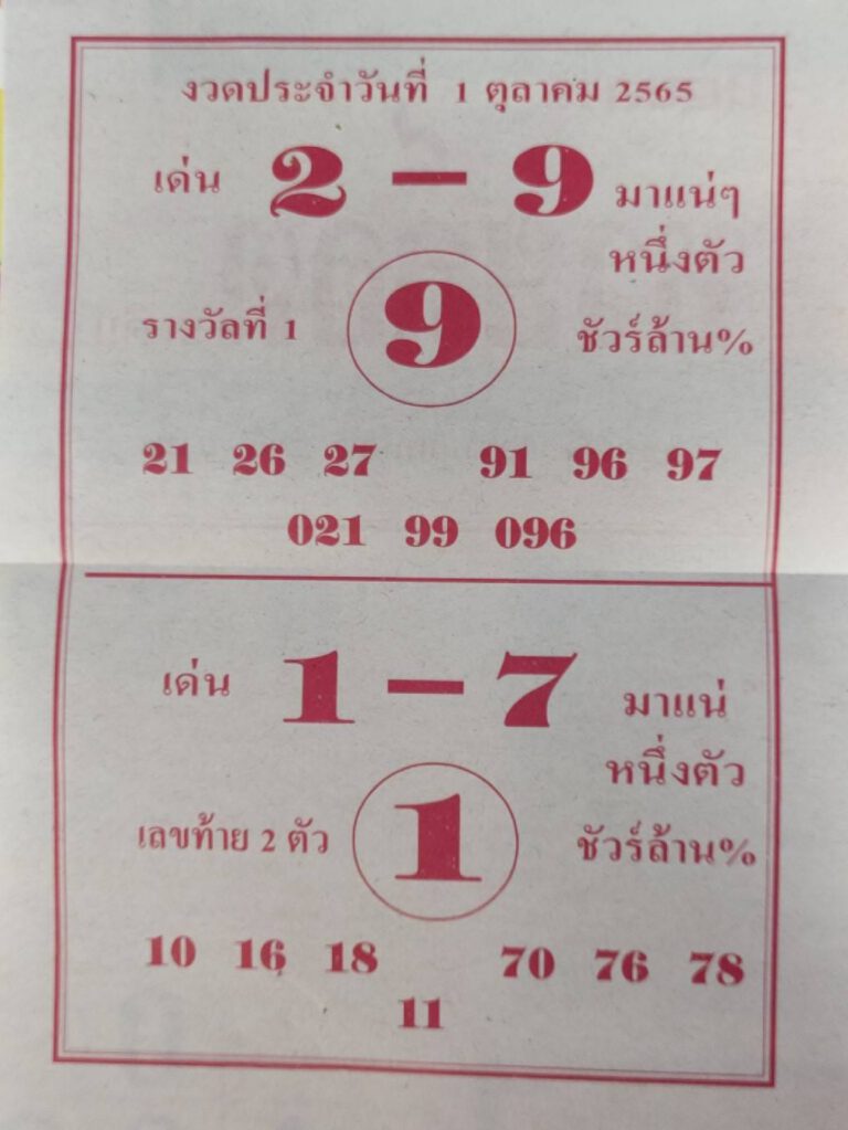 หวยล็อต งวดวันที่ 1 ตุลาคม 2565