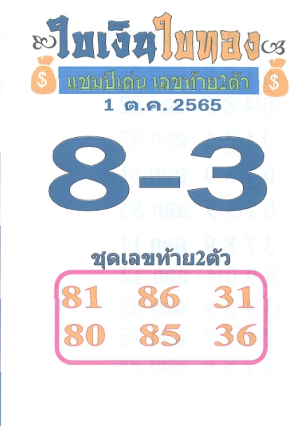 หวยใบเงิน ใบทอง งวดวันที่ 1 ตุลาคม 2565