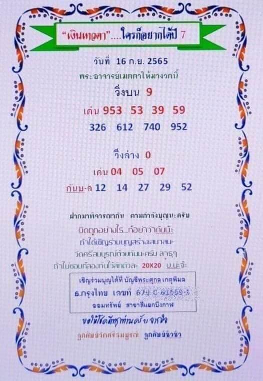 แนวทางหวยรัฐบาลไทย เจ๊อรองค์ งวดวันที่ 16 กันยายน 2565