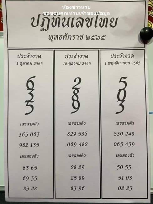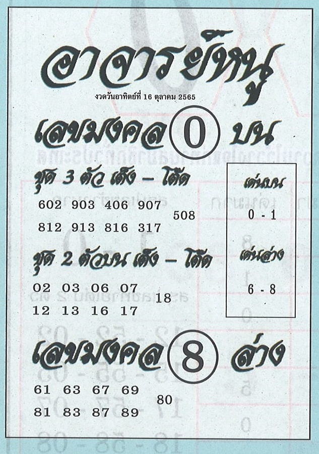 แนวทางหวยรัฐบาลไทย งวดวันที่ 16ตุลาคม 2565