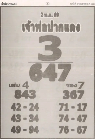 แนวทางเลขเด่น หวยเจ้าพ่อปากแดง งวดประจำวันที่ 2 พฤษภาคม 2569 หวยซองที่เป็นที่นิยมอย่างมาก วิเคราะห์สูตรเลขเด็ดแม่นๆ เน้นๆ ถูกมาหลายงวด ทั้ง 3 ตัวตรง 2ตัวตรง โต๊ด เต็ง เป็นแนวทางหวยที่ คอหวย เซียนหวย นักเสี่ยงโชค ต่างรอติดตามทุกงวด มาดูกันว่างวดนี้จะให้เลขเด็ด ทั้งเลขท้าย 3 ตัว และ 2 ตัว จากหวยเจ้าพ่อปากแดงงวดนี้