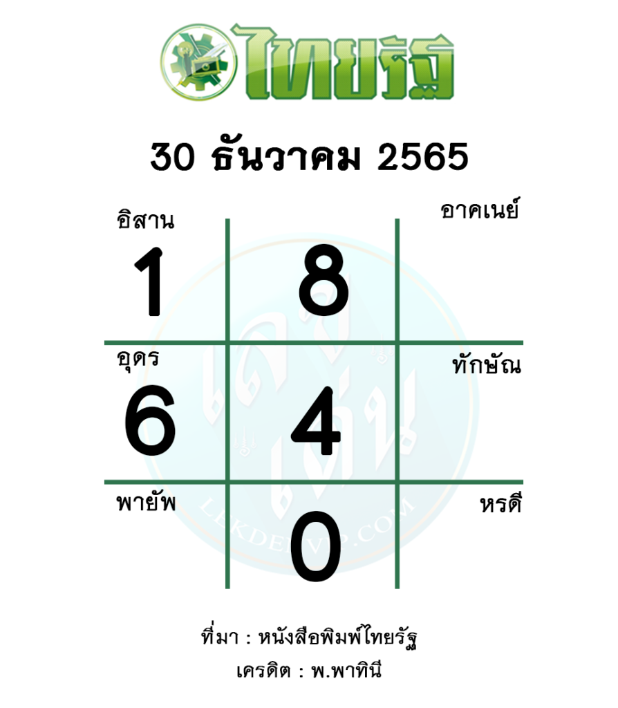 แนวทางหวยไทยรัฐ งวดประจำวันที่ 30 ธันวาคม 2565