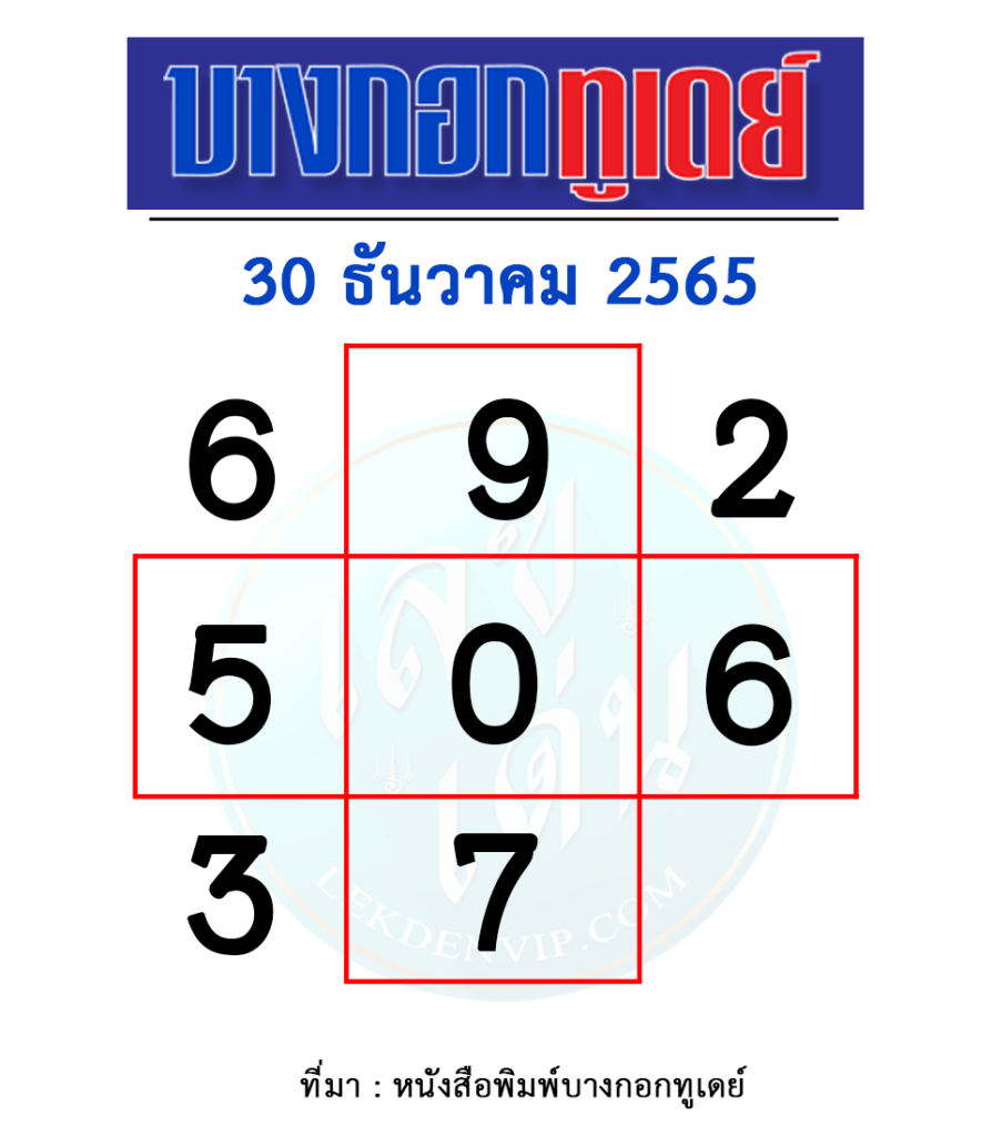 เลขมหาทักษา หวยบางกอกทูเดย์ 30 ธ.ค.65 ขณะที่ เลขเด็ด หวยบางกอกทูเดย์ มีเลข 6 – 9 – 5 – 3 – 7 – 0 – 6 – 2
