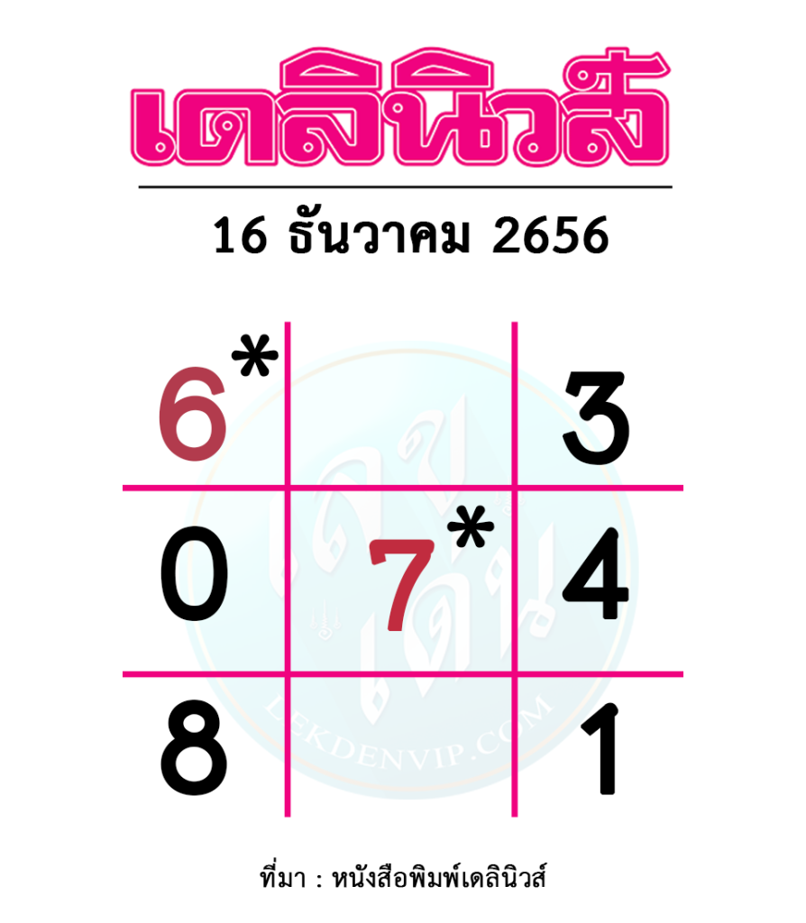 แนวทางเลขเด็ดหวยเดลินิวส์ งวดประจำวันที่ 16 ธันวาคม 2565