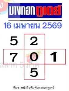 แนวทางหวยบางกอกทูเดย์ งวดประจำวันที่ 16 เมษายน 2569