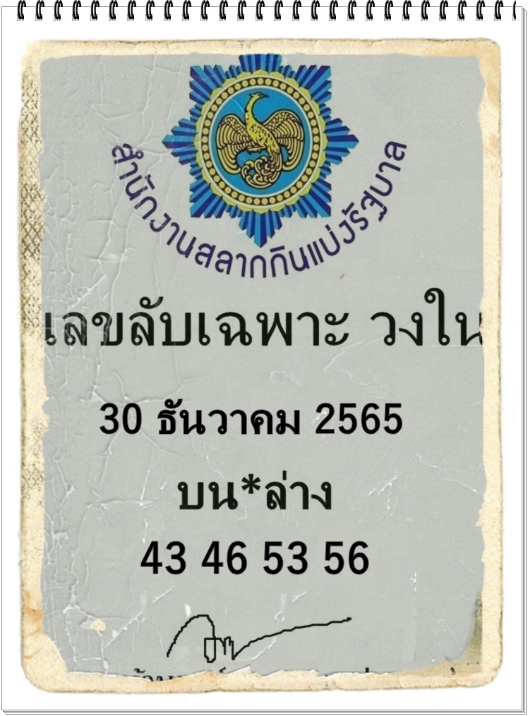 เลขลับเฉพาะวงใน งวดวันที่ 30 ธันวาคม 2565