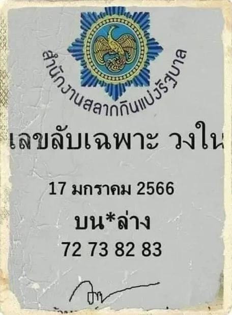 เลขลับเฉพาะวงใน งวดวันที่ 17 มกราคม 2566