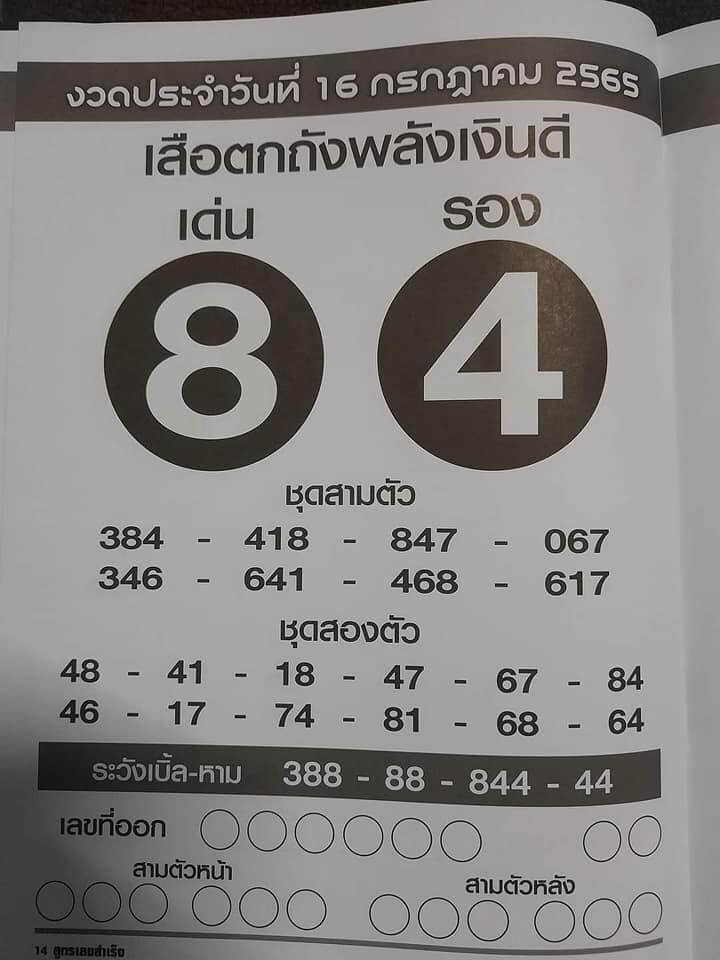 เสือตกถังพลังเงินดี งวดประจำวันที่ 16 กรกฎาคม 2565