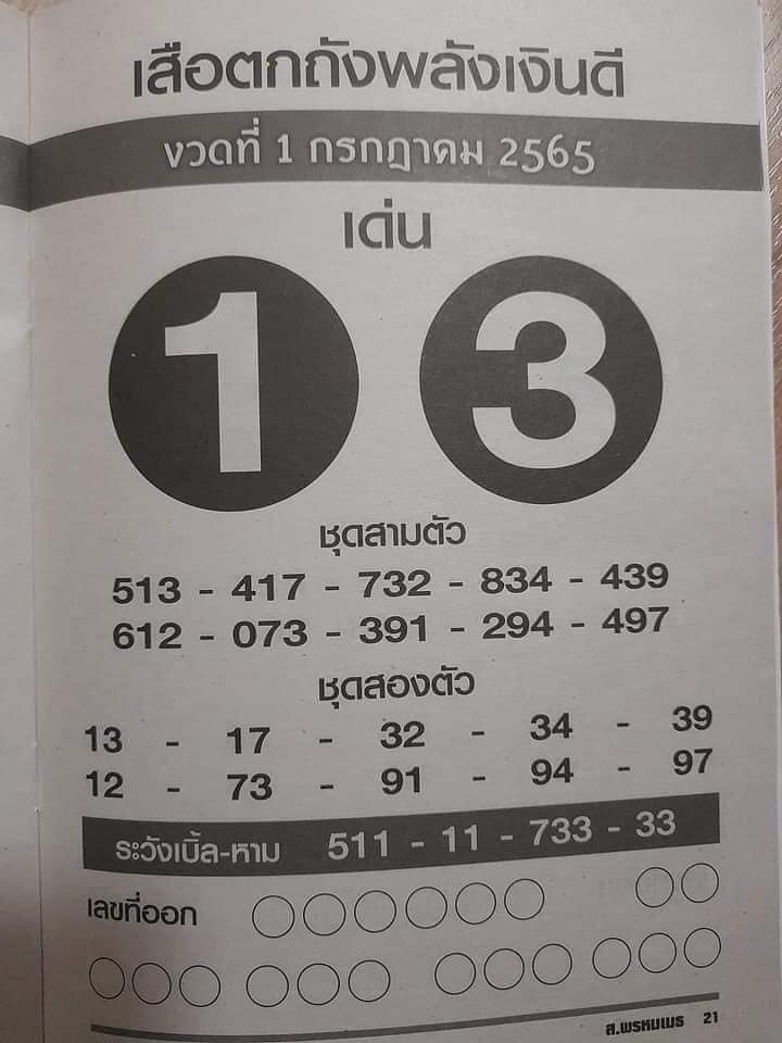 เสือตกถังพลังเงินดี งวดประจำวันที่ 1 กรกฎาคม 2565 แนวทางหวยรัฐบาล สลากกินแบ่งรัฐบาล เลขชุด หวยซอง อัปเดตก่อนใคร สามารถดูได้ที่ด้านล่างนี้