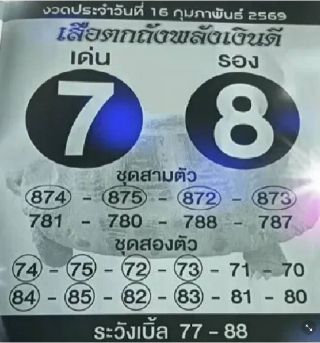 เสือตกถังพลังเงินดี งวดประจำวันที่ 16 กุมภาพันธ์ 2569